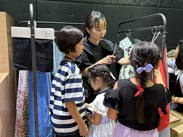 プログラムの初日にテキスタイルの基本を学んだ《ファッションアカデミー》参加者たち。8月4日月曜日からは、いよいよぬいぐるみの洋服づくりです。翌5日火曜日までの2日間、作業に取り組みました。