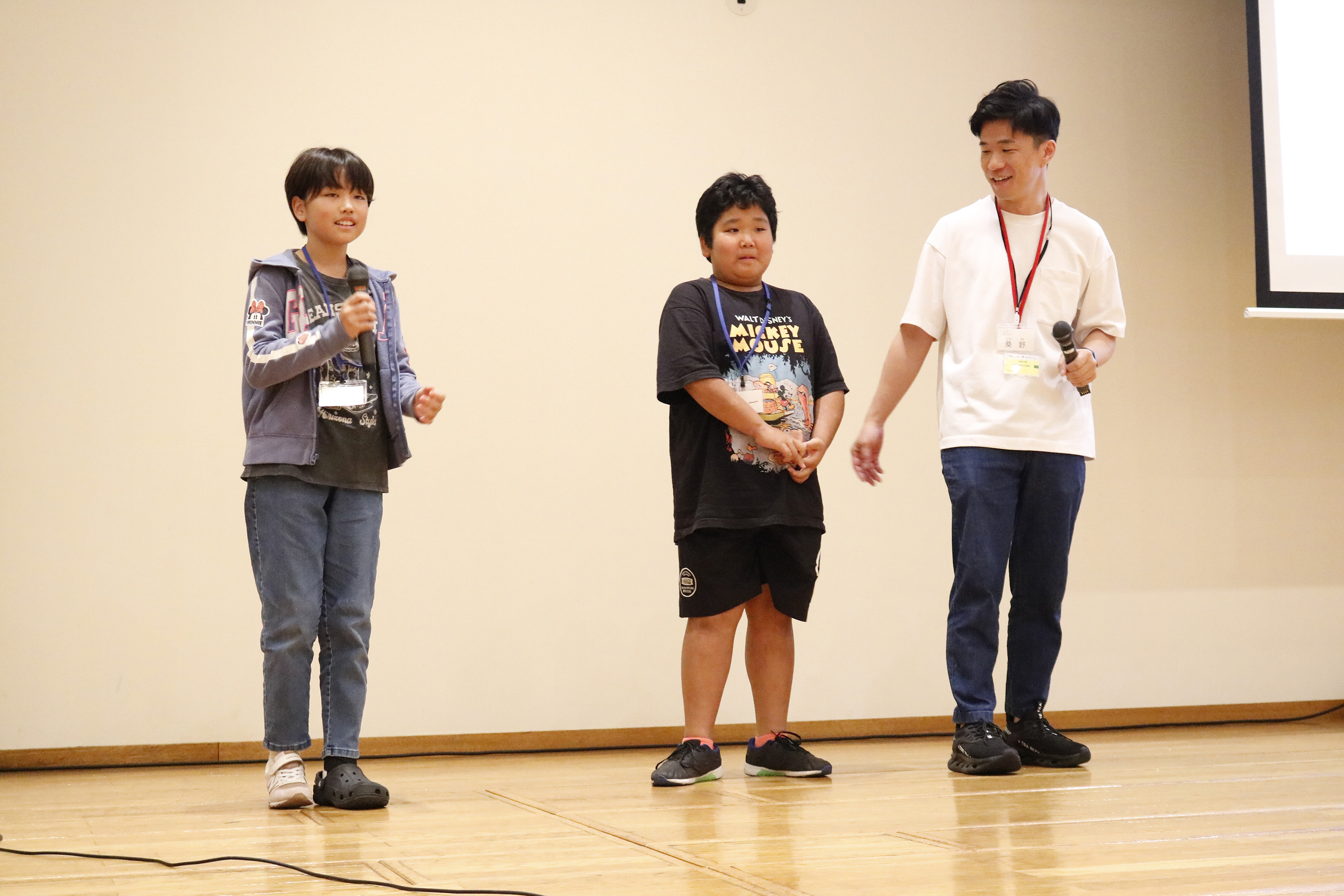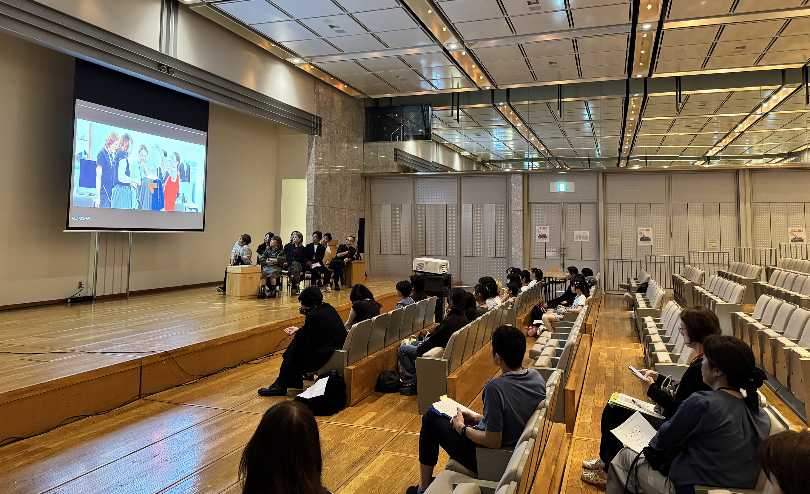 主催者や運営事務局のスタッフ紹介の後、昨年2024年度のこどもファッションプロジェクトのメイキングムービーを上映。ファッションショーの舞台裏や当日のショーの模様を見てもらいました。